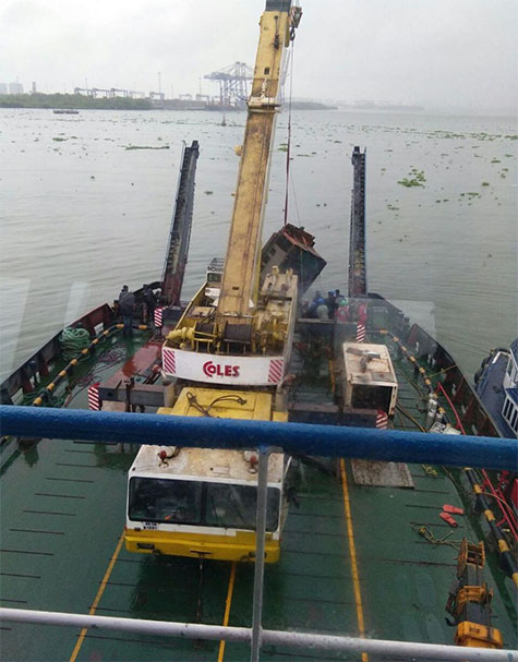 Most of the previous salvage operations done by LOTS-India involved a sunk barge refloated by pumping out water in shallow depths, using balloons for small-sized vessels for a successful floatation. For ‘Operation Neethiman’, there was no choice except a straight lift out of the water. The plan was to do this by mounting a 150-MT crane on a Ro-Ro vessel and anchor at the wreck. In spite of challenges which were increasingly ahead, there was an excellent sense of partnership and inimitable teamwork amongst all stakeholders which ultimately proved a harbinger of success.